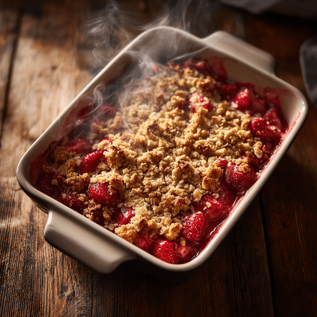 My Homemade Strawberry Rhubarb Crisp is the perfect balance of sweet strawberries and tart rhubarb topped with a buttery oat crumble. I mix fresh strawberries and rhubarb with sugar, lemon juice, vanilla, and cornstarch to create a juicy fruit filling. Then I sprinkle a simple topping made from oats, flour, brown sugar, and melted butter over the fruit. After baking until golden and bubbling, the crisp becomes warm, comforting, and irresistibly delicious. I love serving it with a scoop of vanilla ice cream for the ultimate cozy dessert that brings everyone to the table.