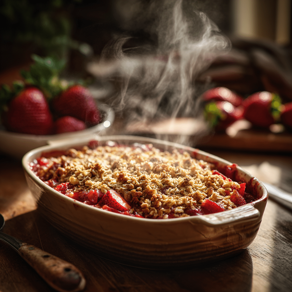This Homemade Strawberry Rhubarb Crisp combines sweet strawberries and tangy rhubarb with a buttery oat crumble topping. The fruit becomes juicy and bubbling while the topping turns golden and crisp, creating the perfect comforting dessert.