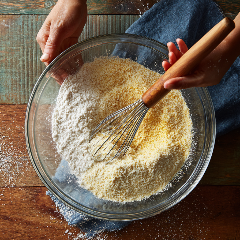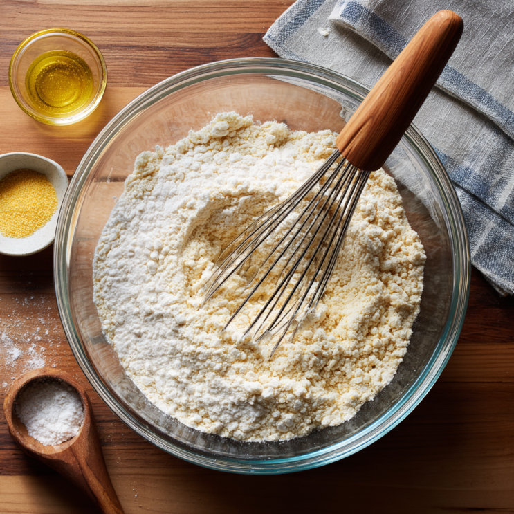 In a large mixing bowl, whisk together your cornmeal, flour, baking powder, baking soda, and salt. Mixing dry ingredients first ensures that your muffins rise evenly and have that perfect golden crumb.