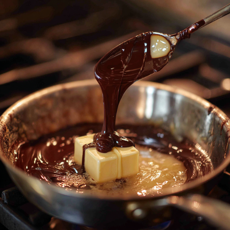 - Melt chocolate, butter, and condensed milk over low heat.