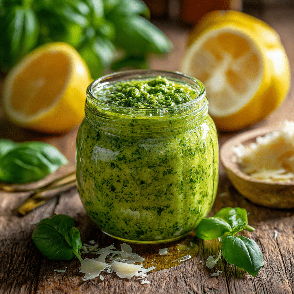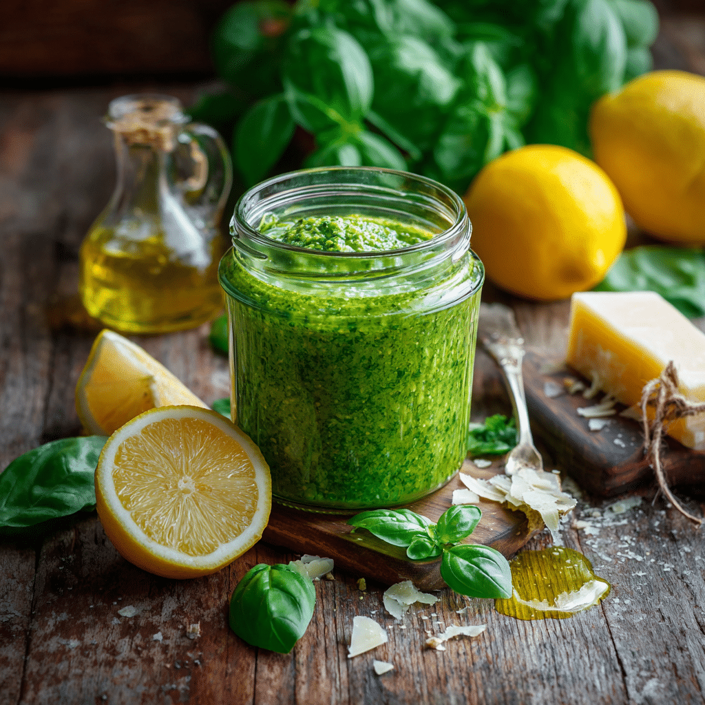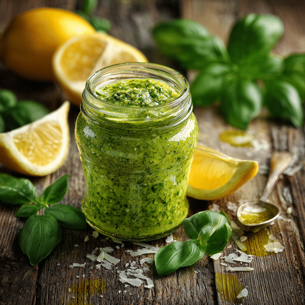 This Lemon Basil Pesto is a fresh, vibrant homemade sauce made with basil, lemon, garlic, Parmesan, and olive oil. It’s bright, zesty, and perfect for pasta, sandwiches, or grilled dishes. Ready in just 10 minutes, it brings a burst of Mediterranean flavor to your kitchen.