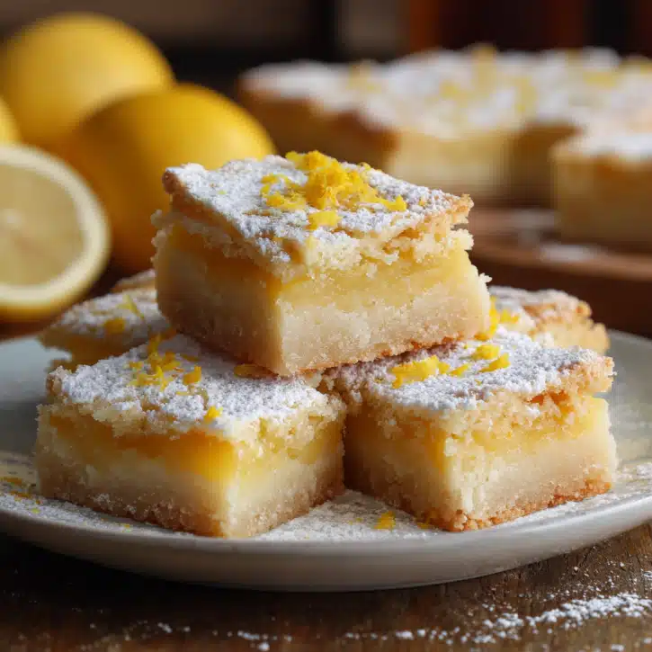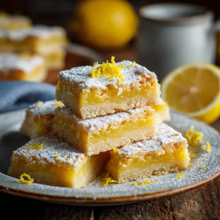 Use real butter for richness. Don’t overmix shortbread dough. Zest lemons before juicing. Optional: add 1 tsp lemon extract for extra zing. Bars keep 5 days in the fridge or up to 2 months frozen.
