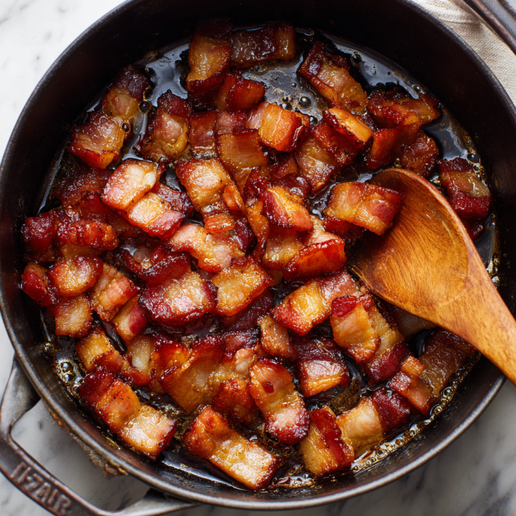 - Cook the bacon: In a large pot, cook bacon over medium heat until crispy. Remove and set aside, leaving a little bacon fat in the pot.