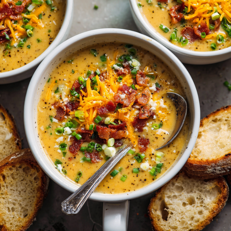 Growing up on the beautiful island of Crete, I spent countless afternoons in my grandmother’s kitchen. She had this magical way of turning simple ingredients into dishes that felt like a warm hug. One chilly winter evening, I decided to recreate a classic comfort dish I’d fallen in love with during a trip to the US Loaded Baked Potato Soup. The creamy texture, the crispy bacon bits, the gooey melted cheese, and that hint of green onion it all reminded me of sitting around a table with family, sharing stories and laughter.