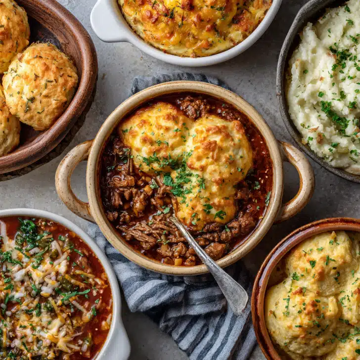 This low carb comfort food recipe combines creamy mashed cauliflower, flavorful sautéed vegetables, and savory ground turkey or beef, topped with melted cheese. It’s cozy, hearty, and satisfying without relying on pasta or potatoes. Simply mash steamed cauliflower with cream cheese and butter, cook meat with mushrooms, onions, and spinach, then layer in a baking dish and top with cheese. Bake until golden and bubbly. Perfect for weeknight dinners, family meals, or meal prep, this dish proves that low carb doesn’t mean sacrificing comfort or flavor. Indulge guilt-free in a warm, nourishing, and delicious meal.