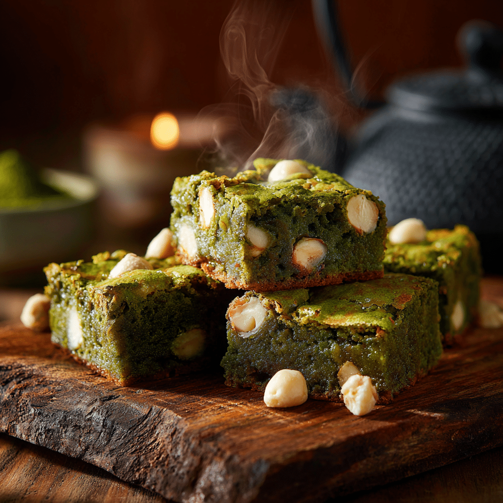 Matcha Brownies with Macadamia Nuts Soft, Nutty Green Tea Bliss