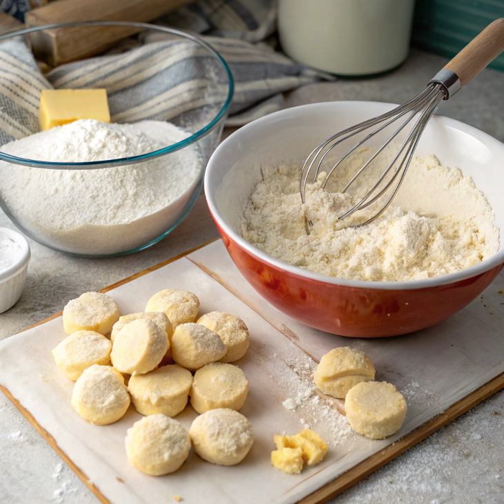 Turn the dough out onto a floured surface and gently knead 4–5 times. Roll it out to about ¾-inch thickness and use a small round cutter (2 inches) to cut mini biscuits. Place them on a parchment-lined baking sheet and bake for 10–12 minutes until golden. Cool slightly