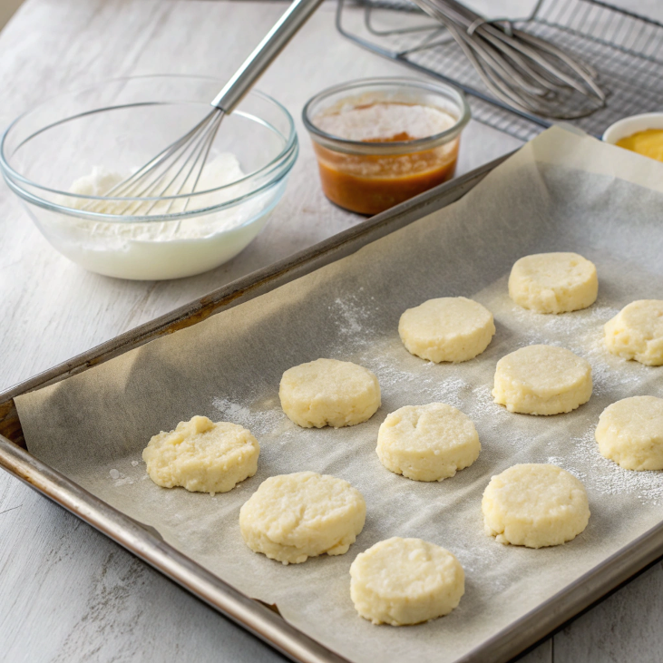 Turn the dough out onto a floured surface, pat it to about ¾-inch thick, and cut into small rounds using a biscuit cutter or glass. Place on the baking sheet, brush tops lightly with almond milk, and bake for 12–14 minutes until golden.