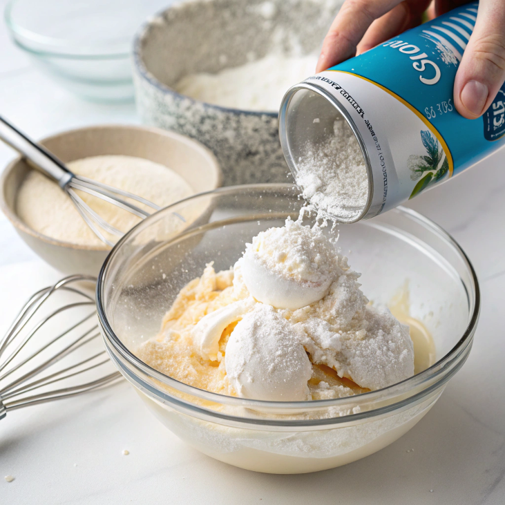 Scoop out the solidified coconut cream from the chilled can, leaving any liquid behind. In a chilled bowl, whip the cream with powdered sugar and vanilla until fluffy peaks form.