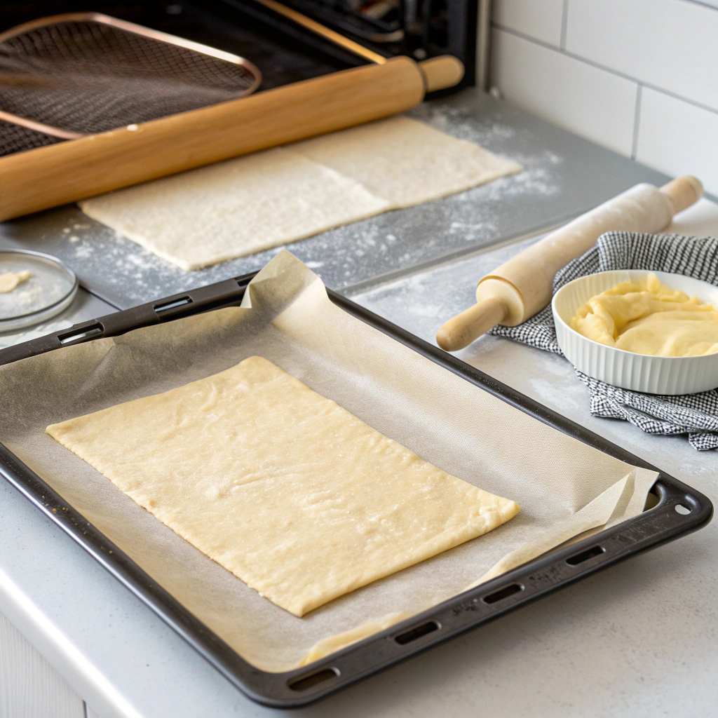 Preheat your oven to 375°F (190°C). Line a baking sheet with parchment paper. Place your puff pastry sheet on a lightly floured surface to roll out.