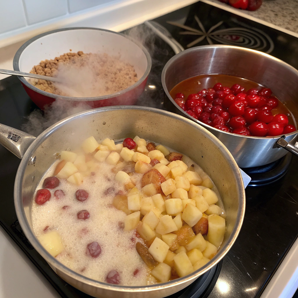 For cherry filling, combine cherries, sugar, lemon juice, and cornstarch. Simmer until the mixture becomes thick and glossy, about 5–6 minutes. Allow to cool completely.