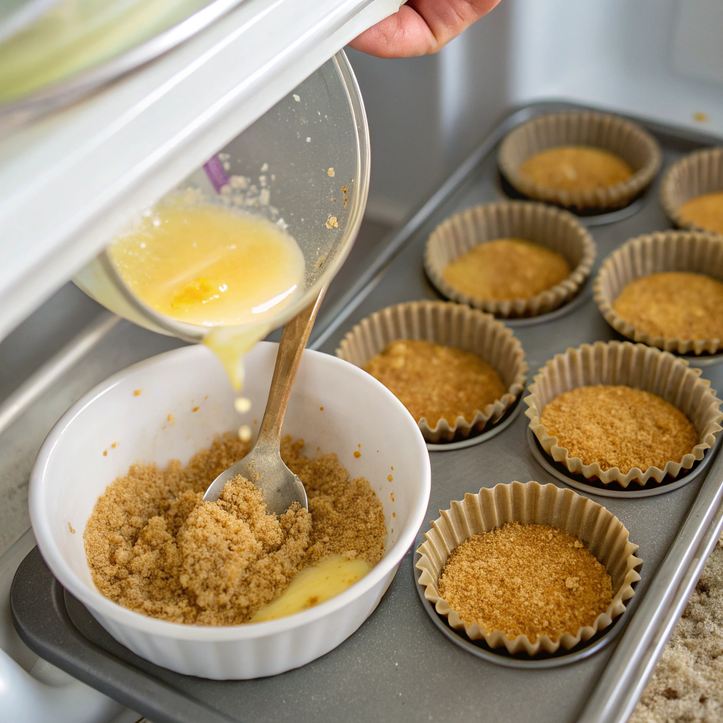 Spoon 1–2 tablespoons of the mixture into each dessert cup and press it down gently to form a crust. Place the cups in the fridge while you prepare the filling to help them firm up.