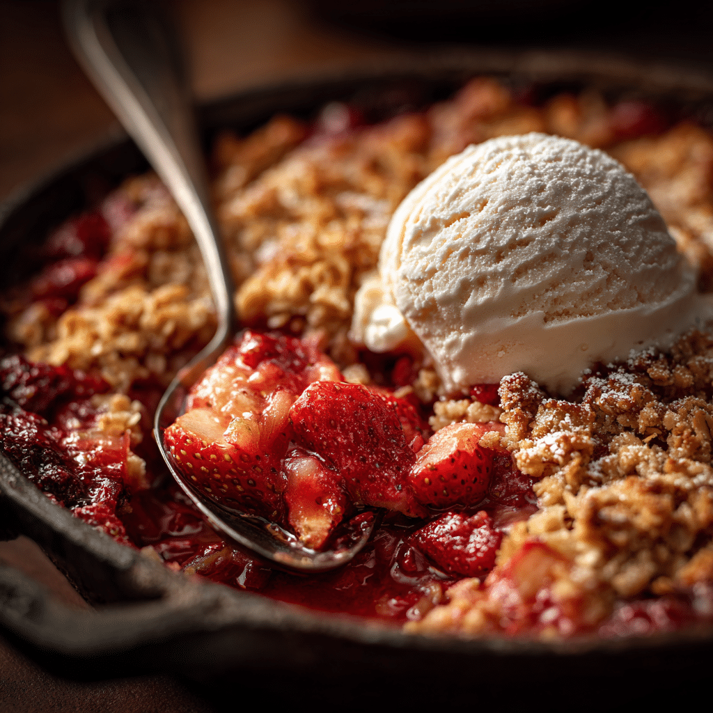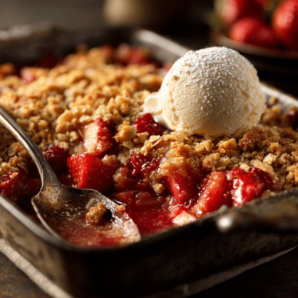 This Old-Fashioned Strawberry Rhubarb Crisp combines sweet strawberries and tart rhubarb baked under a buttery oat crumble topping. It’s a warm, comforting dessert perfect for spring and summer gatherings.