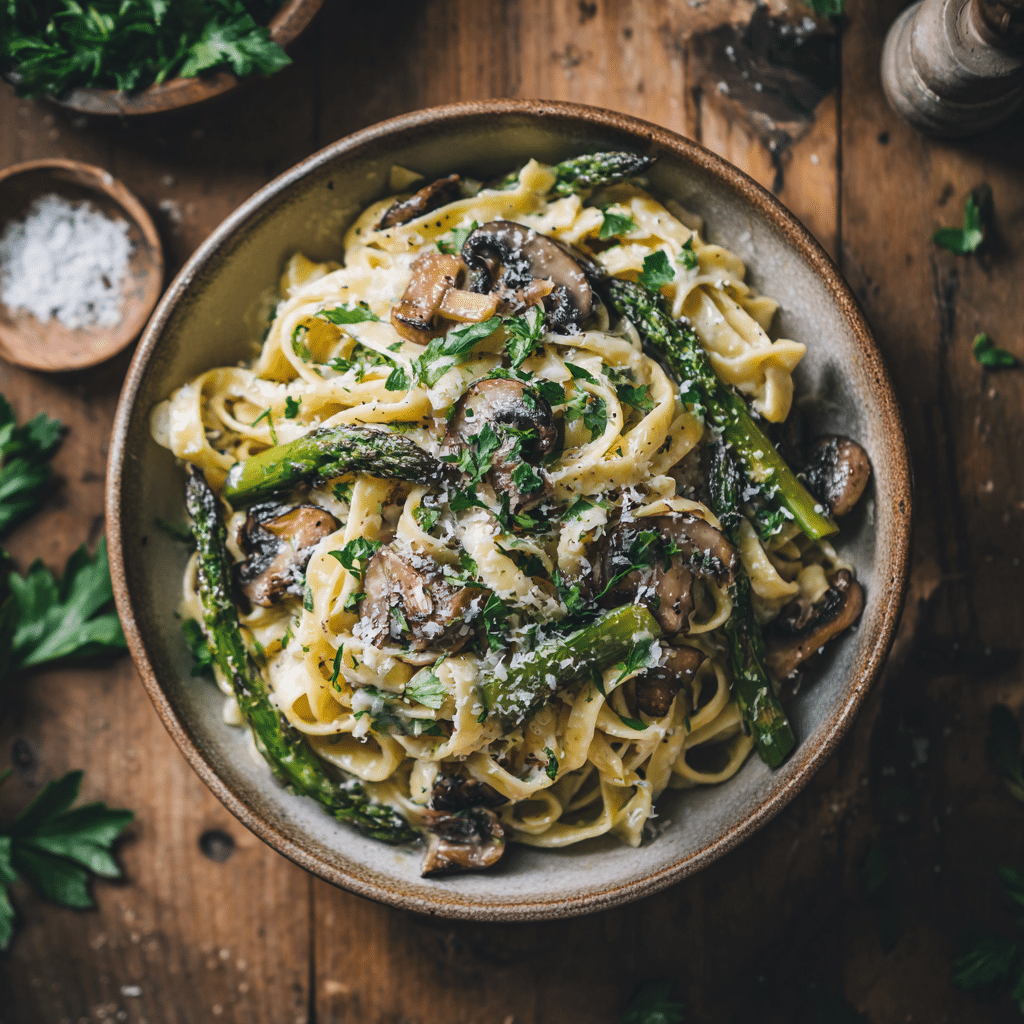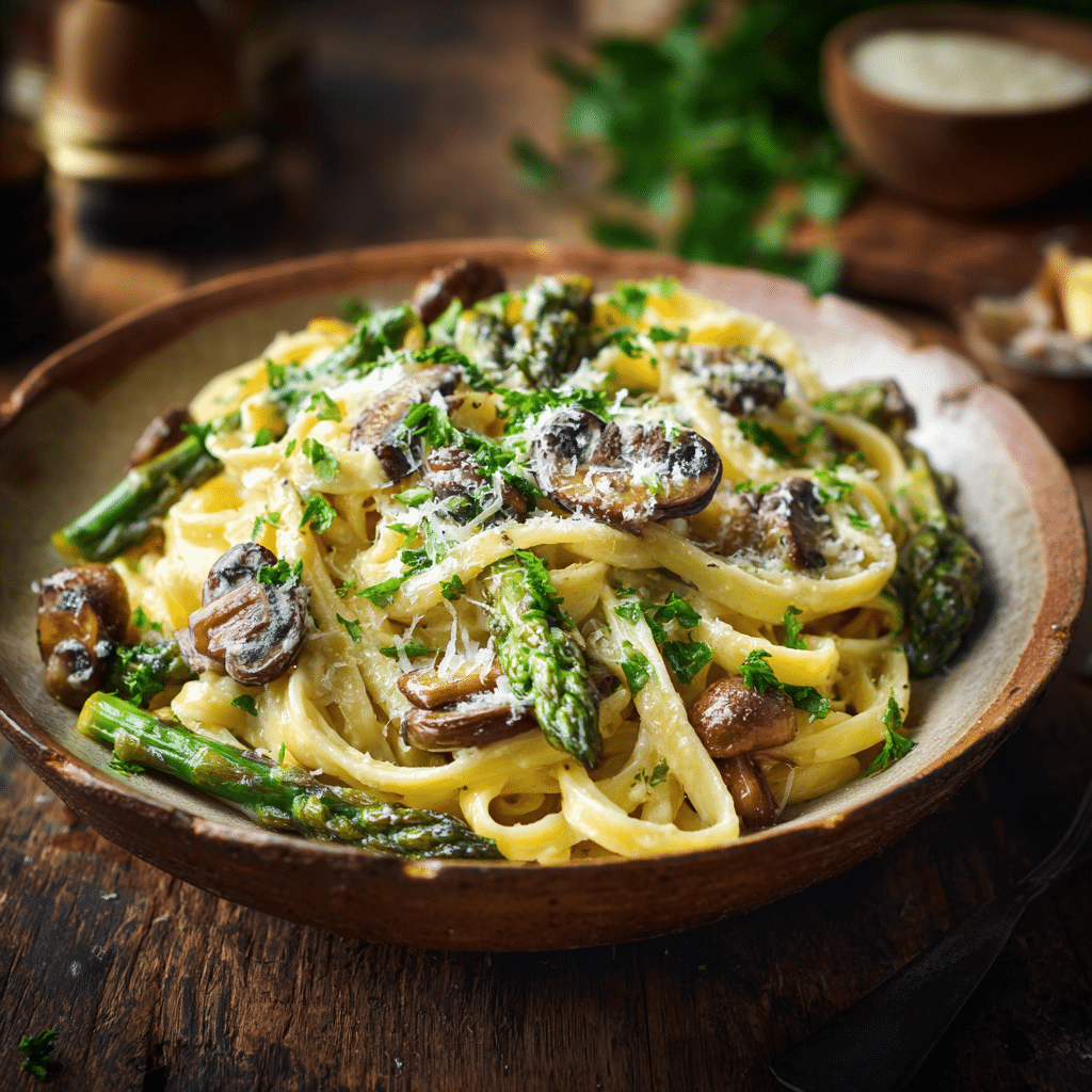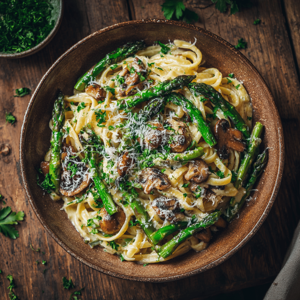 This creamy Parmesan Asparagus Mushroom Pasta is a cozy, comforting dish perfect for weeknights or special dinners. Earthy mushrooms, tender asparagus, and rich Parmesan combine to make an unforgettable pasta experience.
