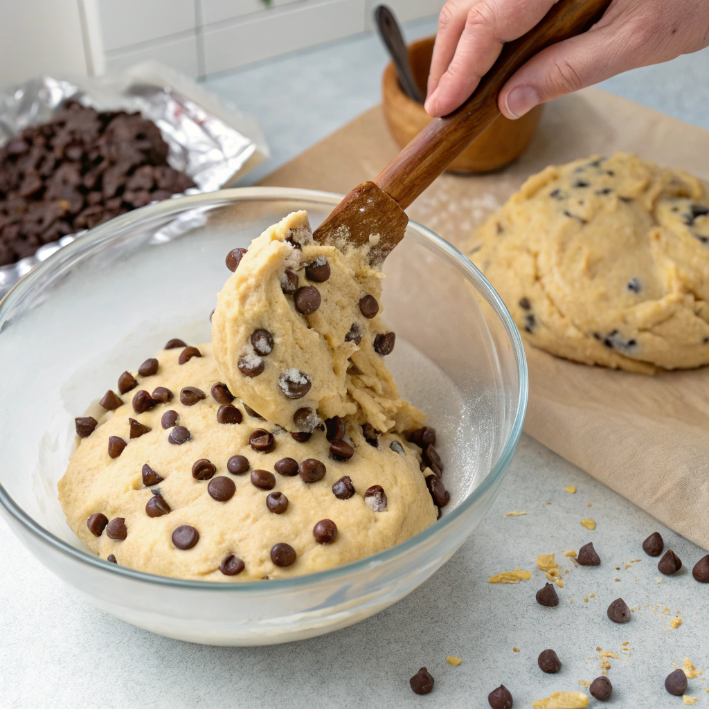 Gently fold in chocolate chips. The dough should be thick and slightly sticky, ready for scooping.