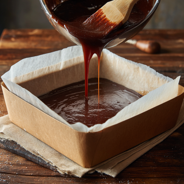 - Line an 8×8 pan with parchment.