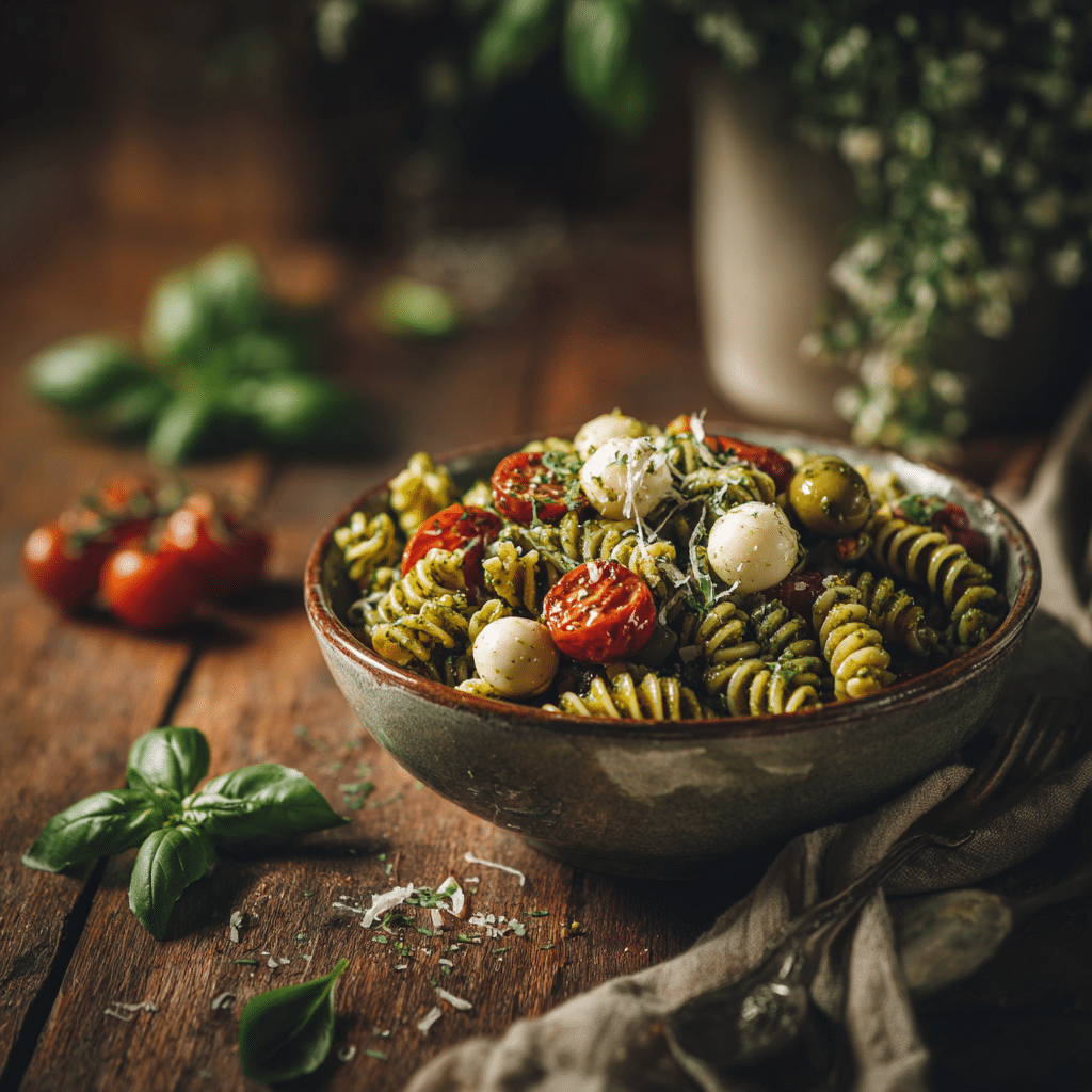 Whenever I prepare pesto pasta salad, I think of laughter around the table, quick lunches in the garden, and those moments when food brings everyone closer. It’s one of those recipes that feels effortless but tastes like you spent hours on it. And the best part? This pesto pasta salad always disappears faster than I expect.