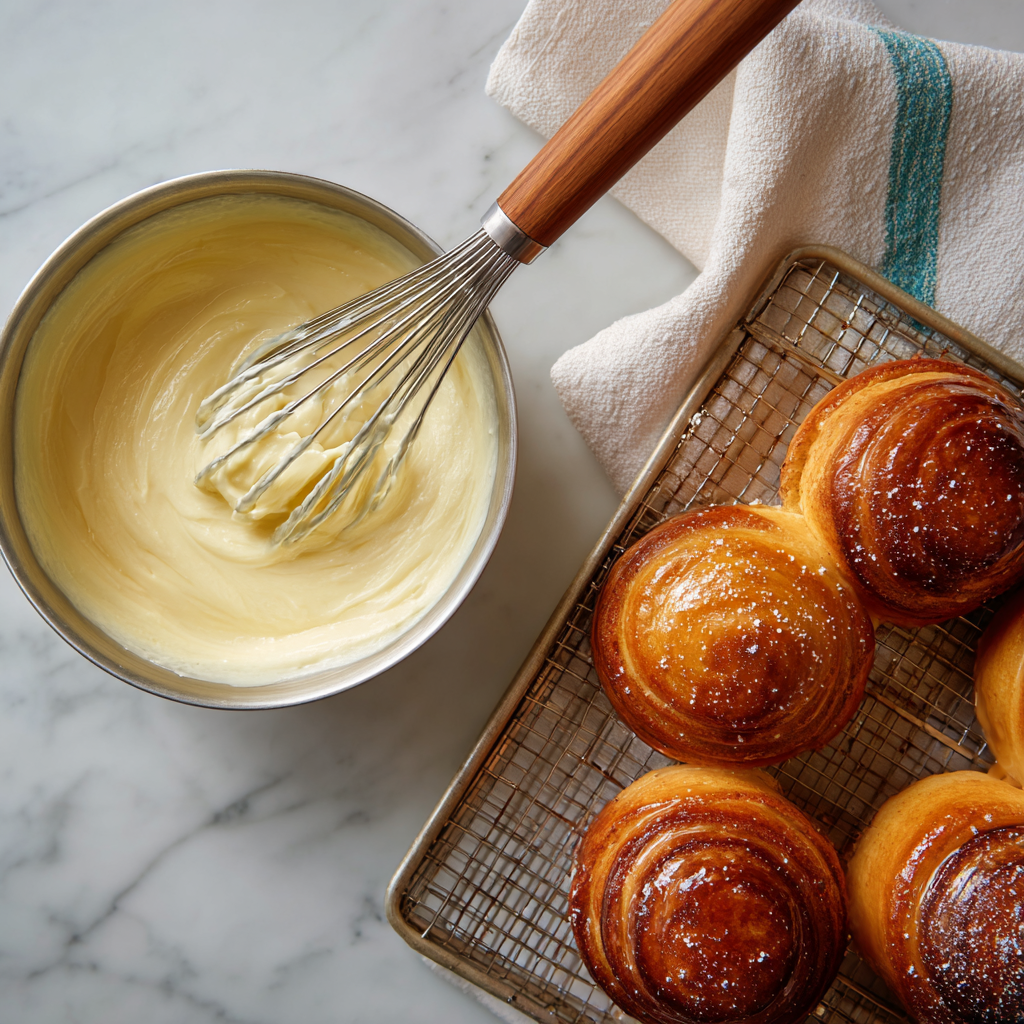 While the rolls bake, whisk together the powdered sugar, espresso, milk, and vanilla until smooth and creamy. Adjust the consistency by adding more sugar (for thicker) or milk (for thinner).