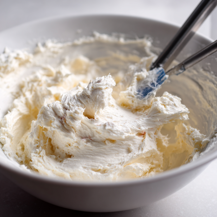 In a large bowl, beat the softened cream cheese and butter together until creamy and smooth. Gradually add powdered sugar and vanilla extract. If the frosting feels too thick, add a tablespoon or two of milk until it reaches a spreadable consistency.