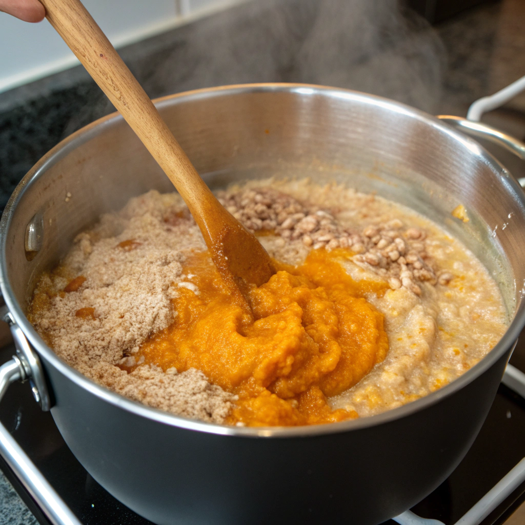 Stir in the pumpkin puree, maple syrup, and pumpkin pie spice. Cook for another 2–3 minutes until the oatmeal is thick and fragrant.