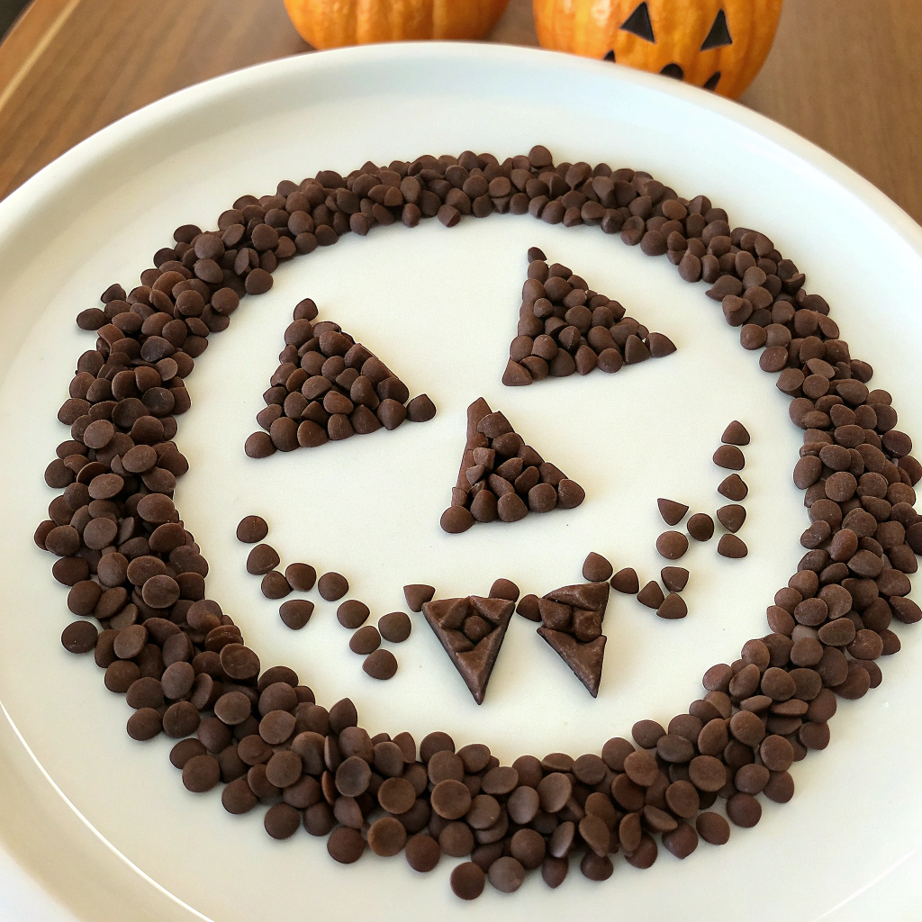 Use mini chocolate chips to create Jack-o’-lantern faces triangles for eyes, a little nose, and a big smile. Get creative with different expressions!