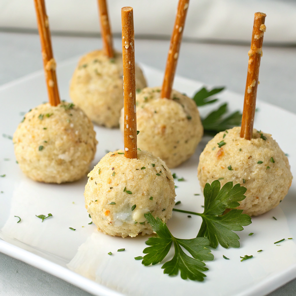 Insert a small piece of pretzel stick into the top of each cheese ball to create a “stem.” Add a tiny parsley leaf next to the stem for a fresh, green touch.