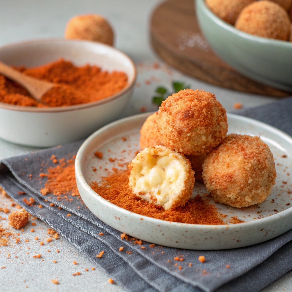 Pour smoked paprika onto a small plate. Roll each cheese ball gently in the paprika until evenly coated. This gives them their signature orange pumpkin color and a hint of smoky flavor.