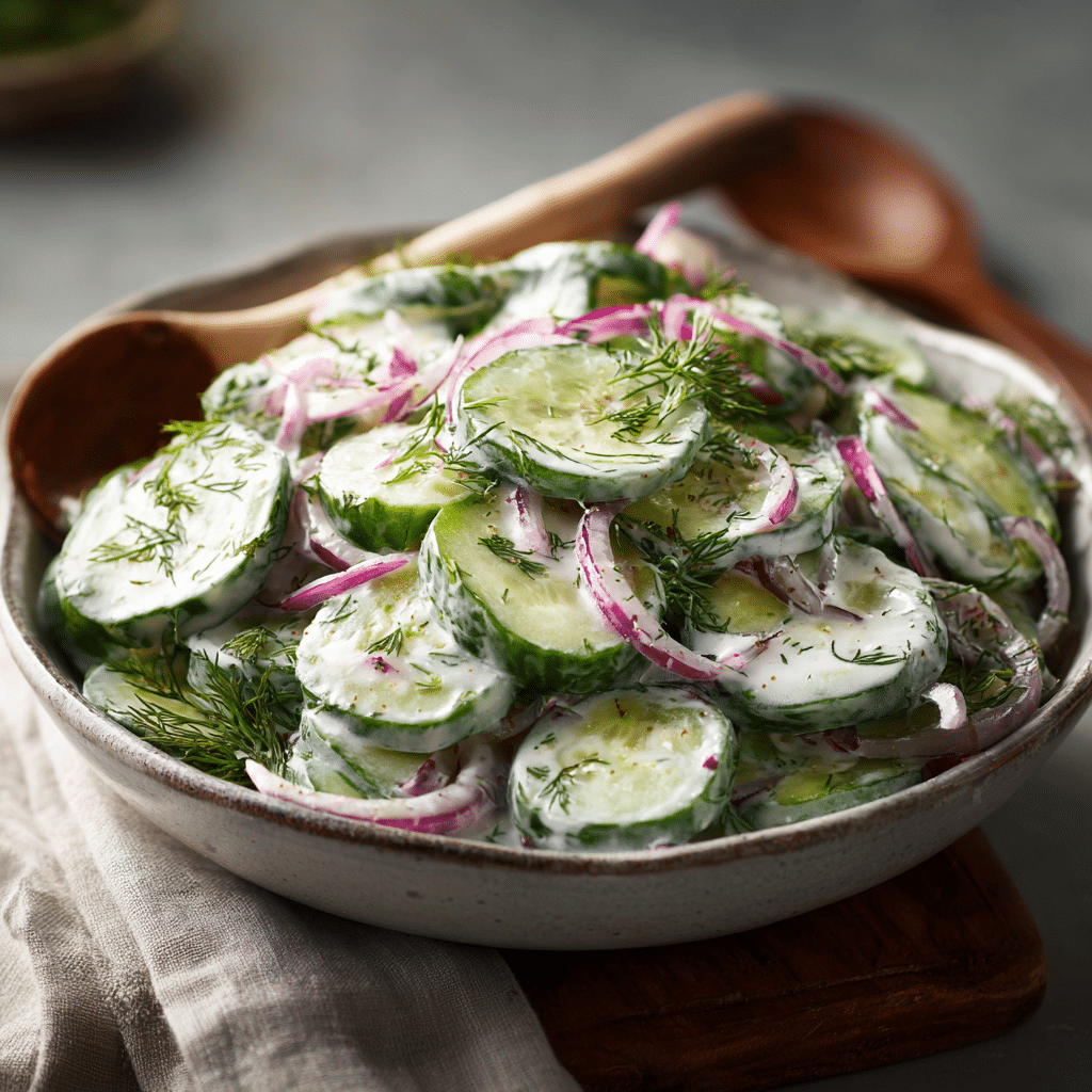 This quick cucumber dill salad is fresh, creamy, and incredibly easy to make. Crisp cucumbers are tossed in a tangy yogurt dressing with fresh dill, creating a refreshing side dish perfect for any meal.