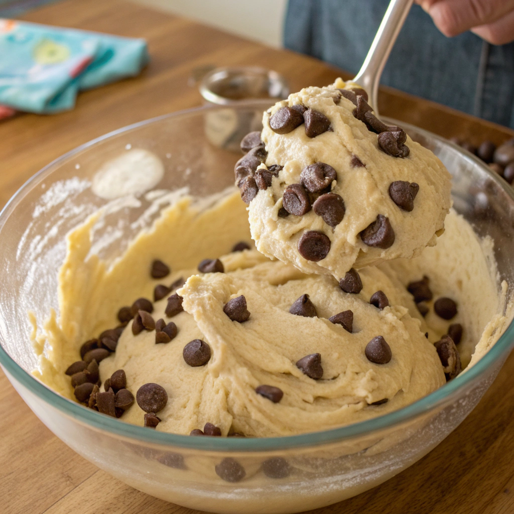 Fold in chocolate chips gently. The dough should be thick and slightly sticky.