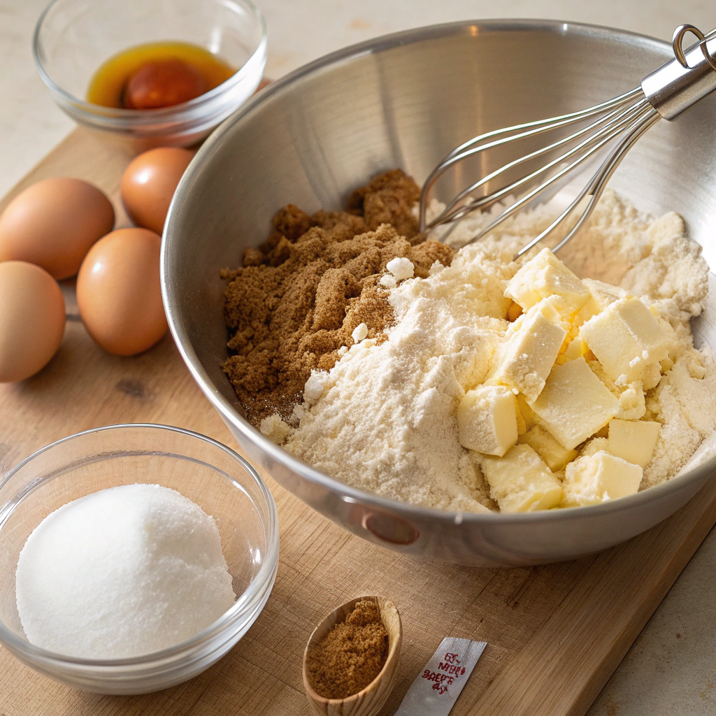 In a large bowl, cream softened butter, granulated sugar, and brown sugar until light and fluffy. This forms the base for your soft, chewy cookies.