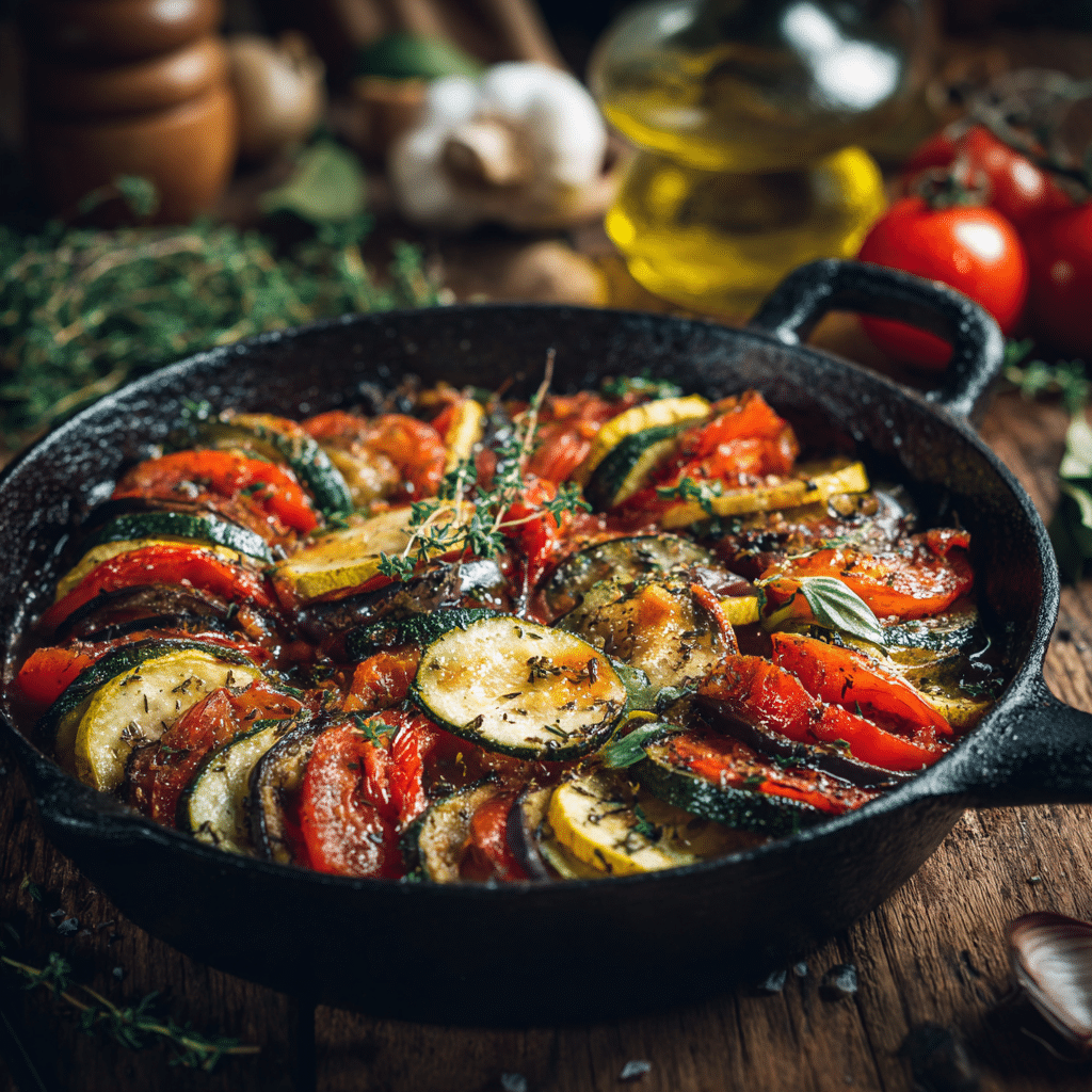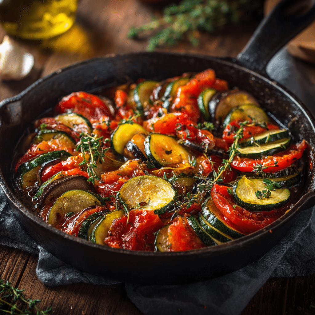 I still remember the first time I made Ratatouille with Garlic and Olive Oil in my tiny kitchen, sunlight spilling through the window while the smell of simmering vegetables filled the air. It felt like I was bringing a piece of the French countryside right into my home. This Ratatouille with Garlic and Olive Oil quickly became one of those comforting dishes I return to again and again, especially when I want something simple yet deeply satisfying. Every time I prepare Ratatouille with Garlic and Olive Oil, I feel connected to the idea of slow cooking, patience, and love poured into every slice of vegetable.