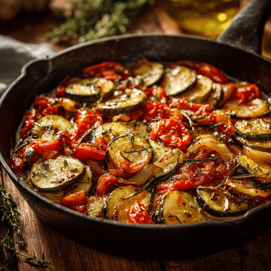 When I talk about Ratatouille with Garlic and Olive Oil, I always think of how it taught me to slow down. I used to rush my meals, but this dish made me appreciate each step. The slicing, the layering, the gentle simmering everything about Ratatouille with Garlic and Olive Oil feels like a calm ritual. Over time, it became more than just a recipe; it became a moment of peace in my busy day.