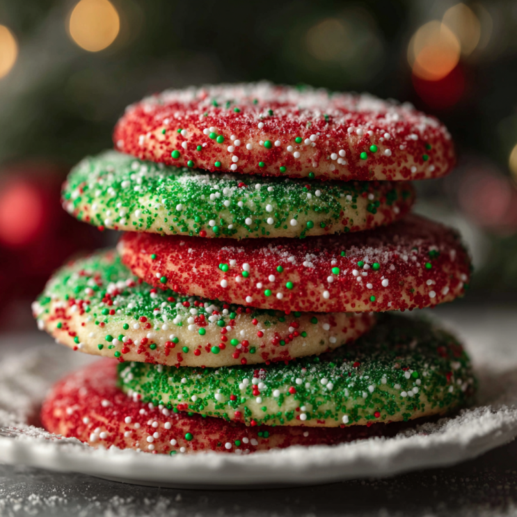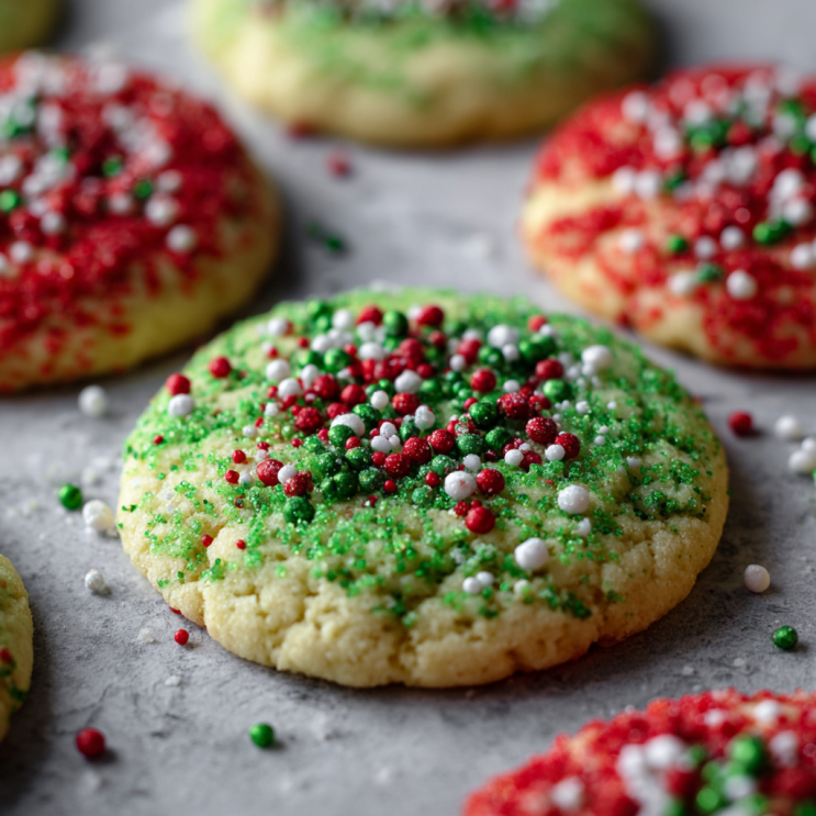 These cookies are classic, buttery, and sweet but with a cheerful holiday twist. They’re soft in the center, slightly crisp on the edges, and coated in sparkling red and green sugar sprinkles. Here’s why you’ll love them: