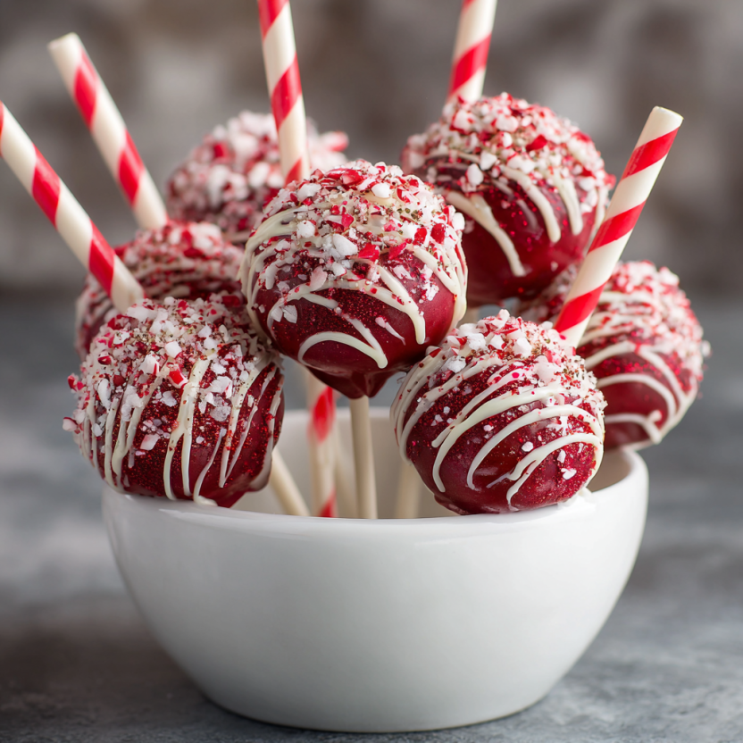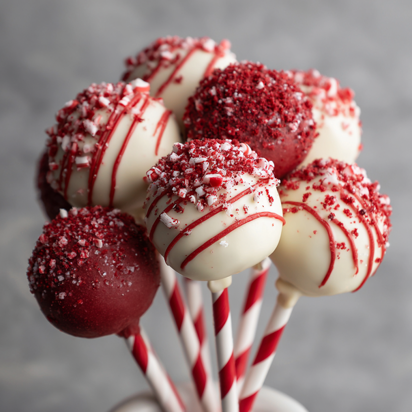 🎄 Recipe Card Red Velvet Candy Cane Cake Pops