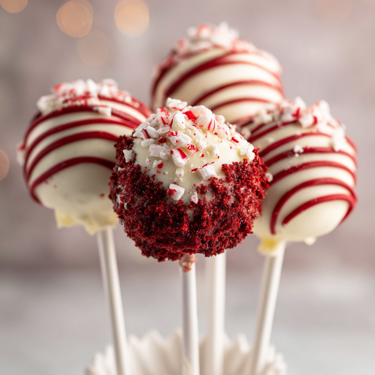 Serve Red Velvet Peppermint Bark Cake Pops on a festive platter near your holiday dessert table. They pair beautifully with hot cocoa, peppermint lattes, or spiced tea. I also love using them as edible gifts just tie a small ribbon around the stick and place them in treat bags.