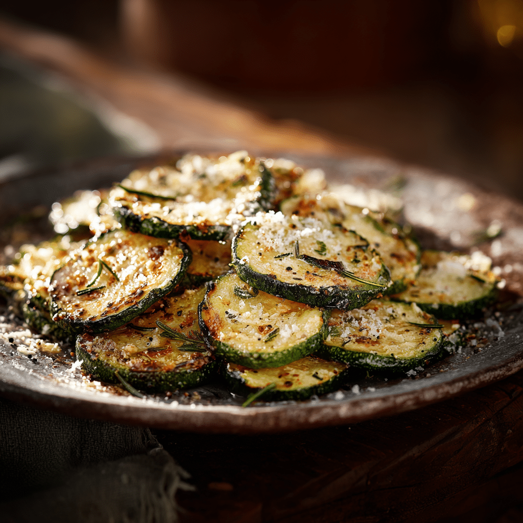 Do not overcrowd the baking tray to ensure proper roasting. Pat zucchini dry before seasoning to avoid steaming. You can substitute Parmesan with nutritional yeast for a dairy-free option. Add a squeeze of lemon juice before serving for extra freshness. Store leftovers in an airtight container in the fridge for up to 3 days and reheat in the oven for best texture.