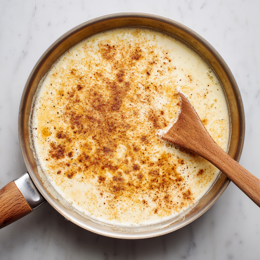 Add white wine to the skillet (if using) and let it reduce slightly. Stir in heavy cream, milk, Parmesan, paprika, salt, and pepper. Simmer gently for 3–4 minutes until slightly thickened.