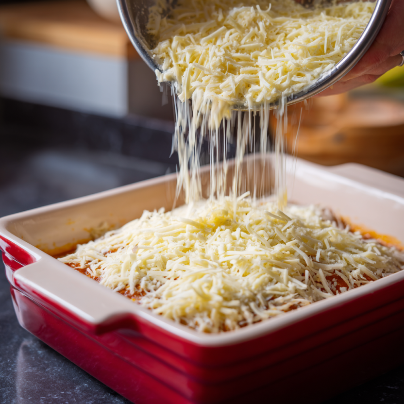 Transfer the mixture to a greased baking dish. Sprinkle shredded mozzarella over the top. Bake in a preheated oven at 375°F (190°C) for 15–20 minutes, until the cheese is melted and bubbly.