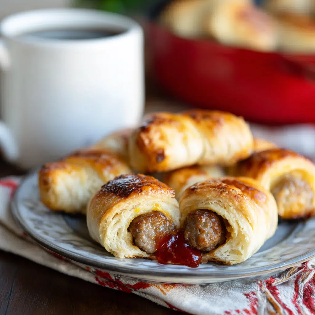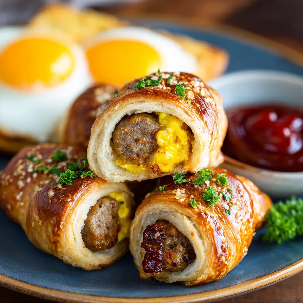 Sausage Breakfast Pigs in a Blanket are golden, flaky pastries wrapped around savory breakfast sausages. I love making them for Sunday mornings, sharing laughter and stories with family. You need puff pastry, sausages, a simple egg wash, and optional mustard or brown sugar. Cut the pastry, roll around the sausages, brush with egg wash, and bake for 15–20 minutes until golden. Serve with fruit, ketchup, or syrup for a cozy, irresistible breakfast. They’re easy, comforting, and perfect for any morning or brunch spread bringing warmth and happiness to the table with every bite.