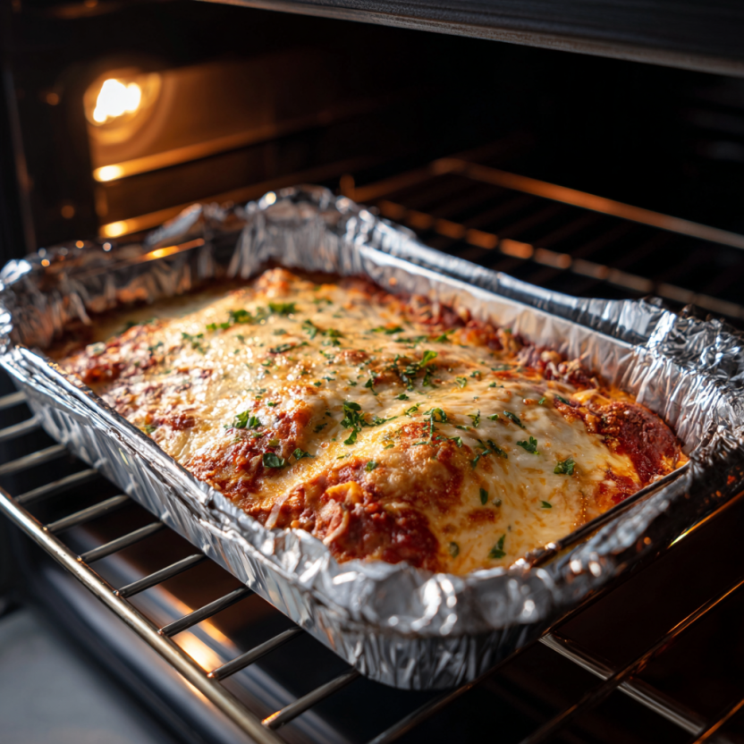 Cover the dish with foil and bake for 25 minutes. Remove foil and bake for an additional 15–20 minutes, or until the top is golden brown and bubbling. Let the lasagna rest for 10 minutes before serving it helps the layers set beautifully.