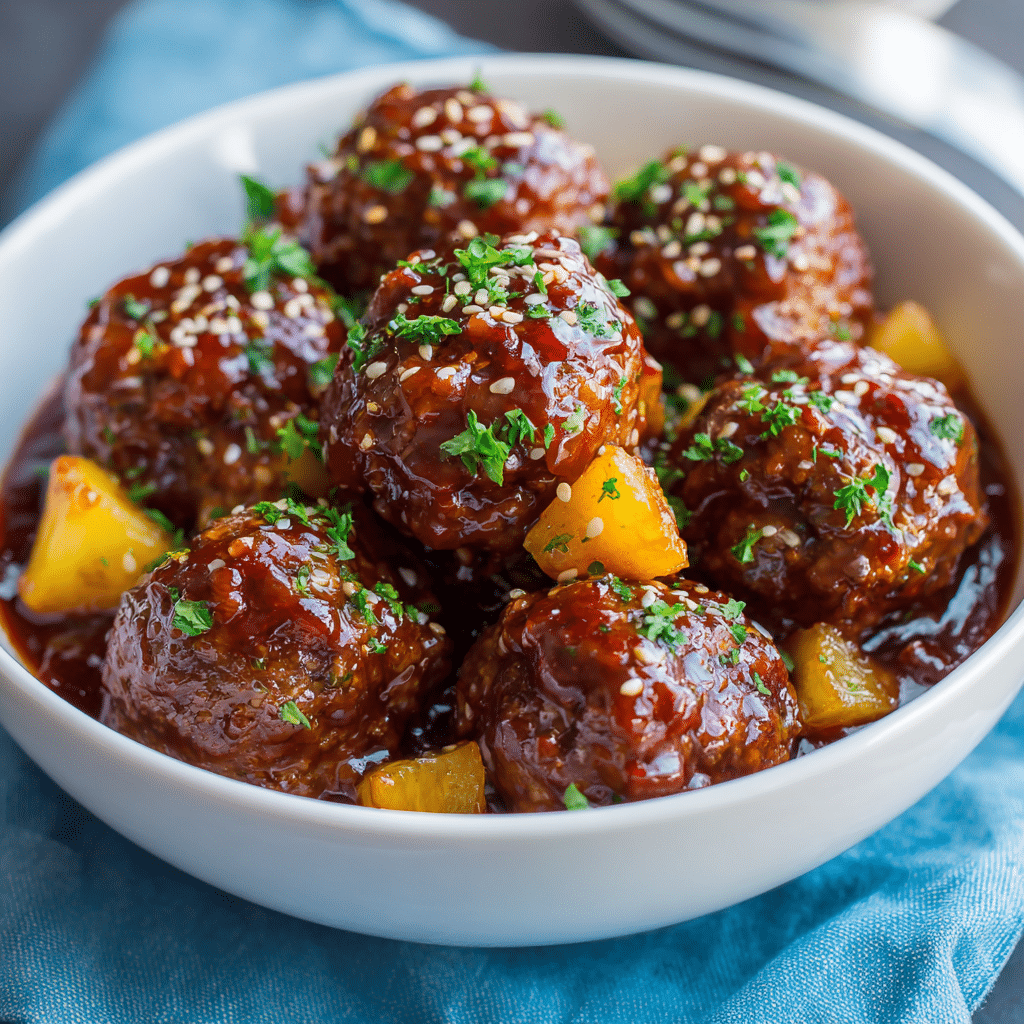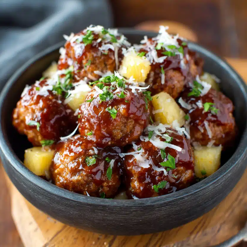 If you’ve ever wanted to try a dish that’s both comforting and exotic, this is it. The sweet pineapple chunks paired with a smoky BBQ glaze hits that perfect balance between sweet and savory, and the slow cooker ensures the meatballs stay tender and juicy. You can even double the recipe for parties or meal prep it reheats beautifully without losing flavor.