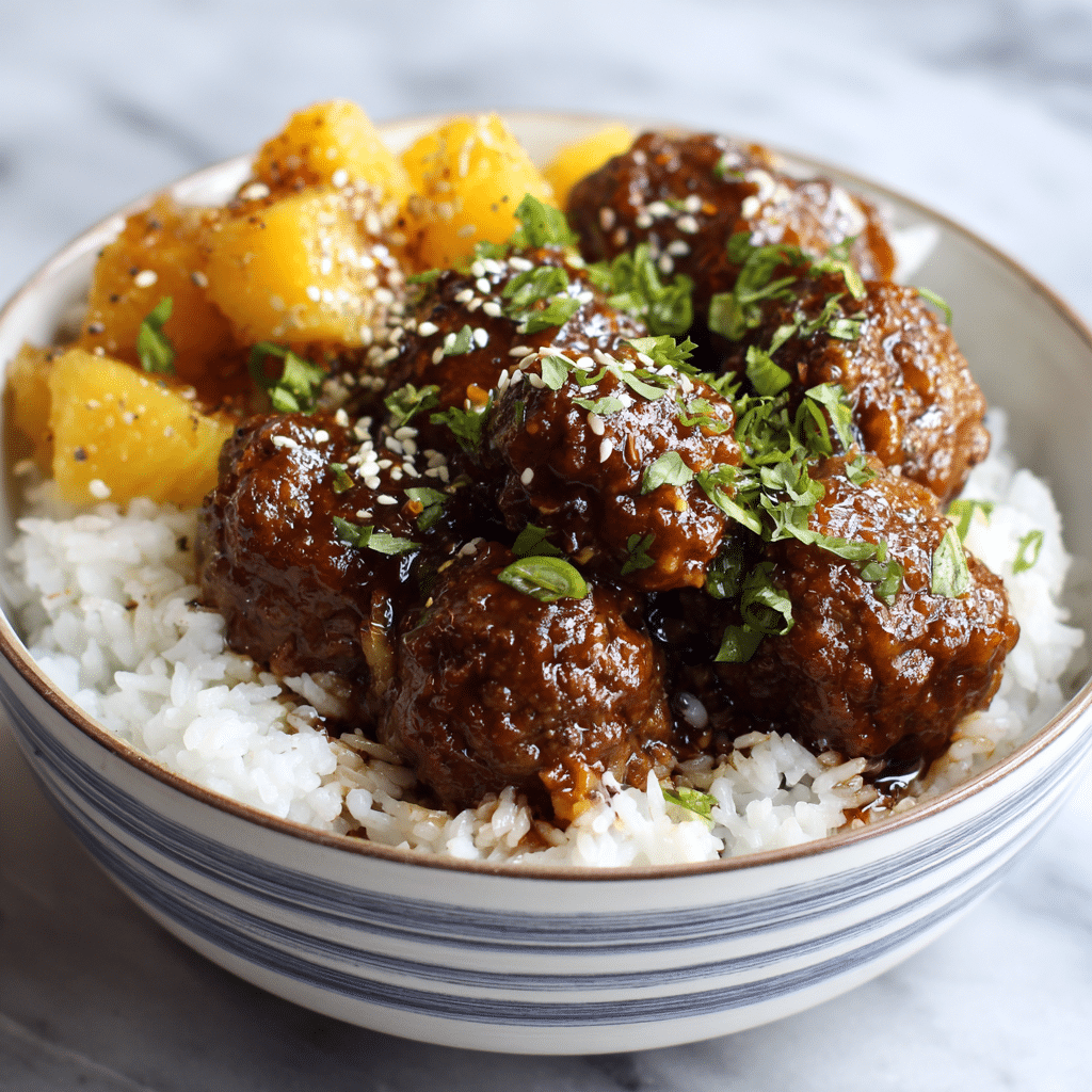 These Slow Cooker Pineapple Teriyaki Meatballs are sweet, savory, and effortless! Mix 1 ½ lbs ground beef with breadcrumbs, eggs, garlic, onion, salt, pepper, and ginger. Form into meatballs. Combine 1 cup teriyaki sauce, ½ cup pineapple juice, 8 oz pineapple chunks, and 2 tbsp brown sugar. Place meatballs in a slow cooker, pour sauce over, and cook on low 4–5 hours (or high 2–3 hours). Optional: thicken with cornstarch slurry. Garnish with sesame seeds and green onions. Serve over rice, noodles, or as appetizers. Perfect for busy nights or parties!
