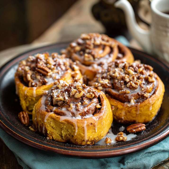 Small-Batch Pumpkin Cinnamon Rolls with Pecan Topping