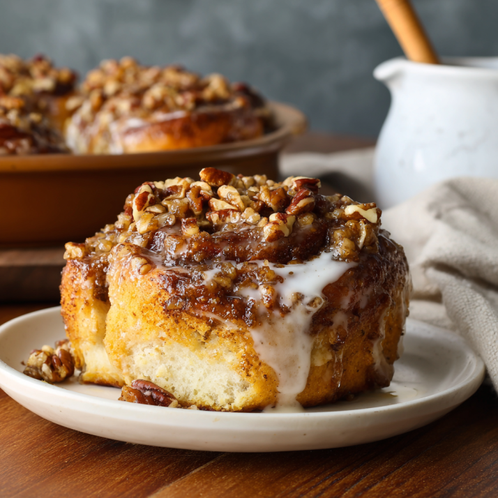 Mix powdered sugar, milk, and vanilla to create a smooth glaze. Drizzle over warm rolls and enjoy each bite soft, gooey, nutty, and full of fall flavor.