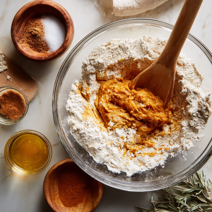 • Make sure your pumpkin purée isn’t watery; if it is, blot it gently with a paper towel before adding to the dough.
