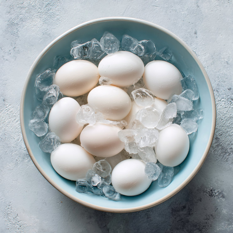 Transfer the eggs to a bowl of ice water. Let them cool for at least 5 minutes before peeling. This helps prevent the shells from sticking and keeps the whites smooth.