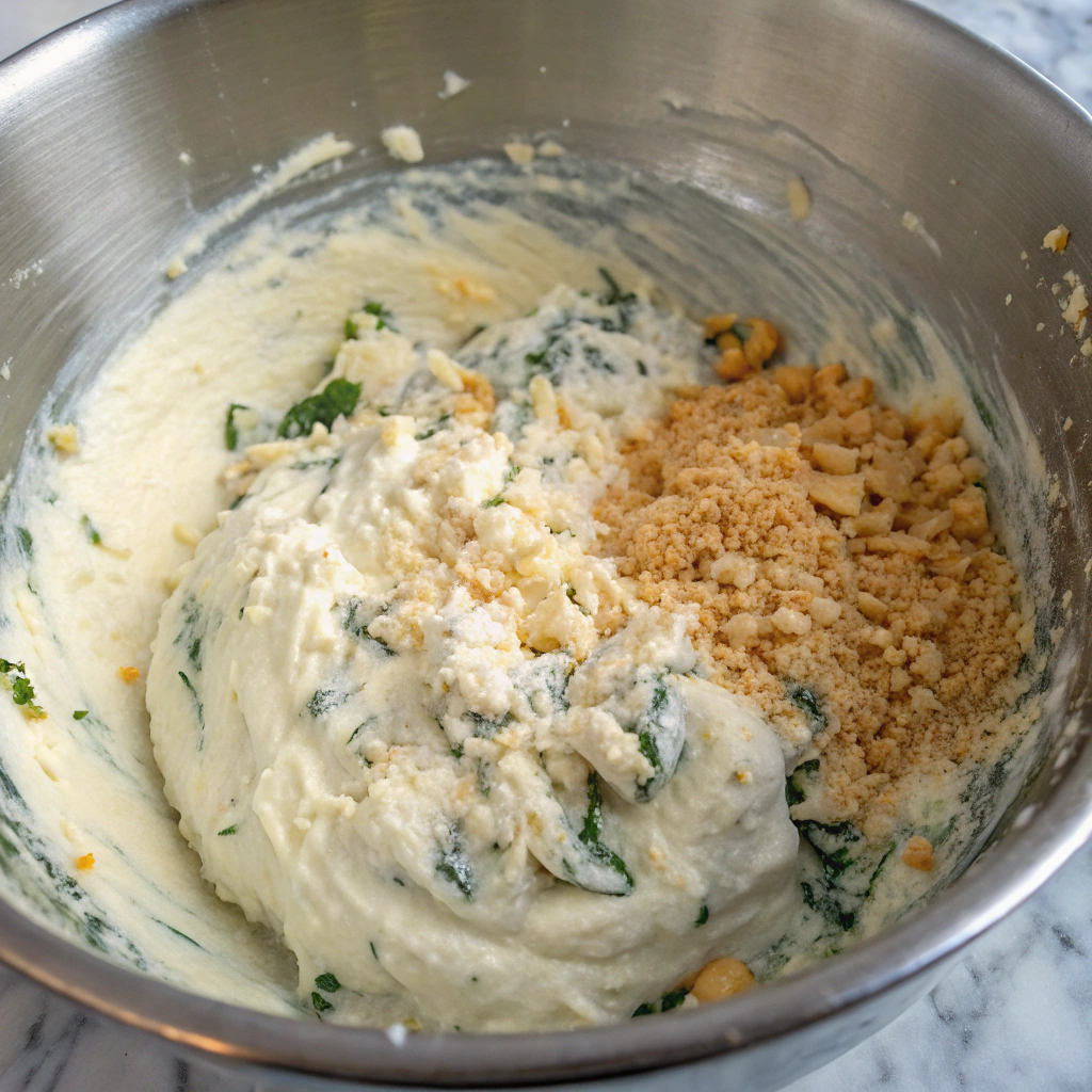 This dip is rich, savory, and full of flavor a perfect balance to the crisp bread crust you’ll bake it in later.
