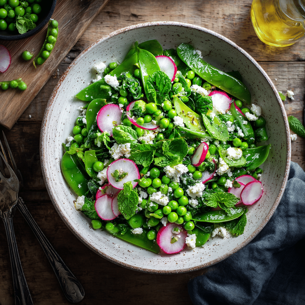 I love how this salad celebrates the season. Fresh peas are naturally sweet and tender, and when combined with crisp greens, mint, and a light vinaigrette, it’s refreshing and satisfying. What makes me happiest is serving this to friends or family and seeing them take that first bright, flavorful bite it’s always met with smiles and “Wow, this is so fresh!”