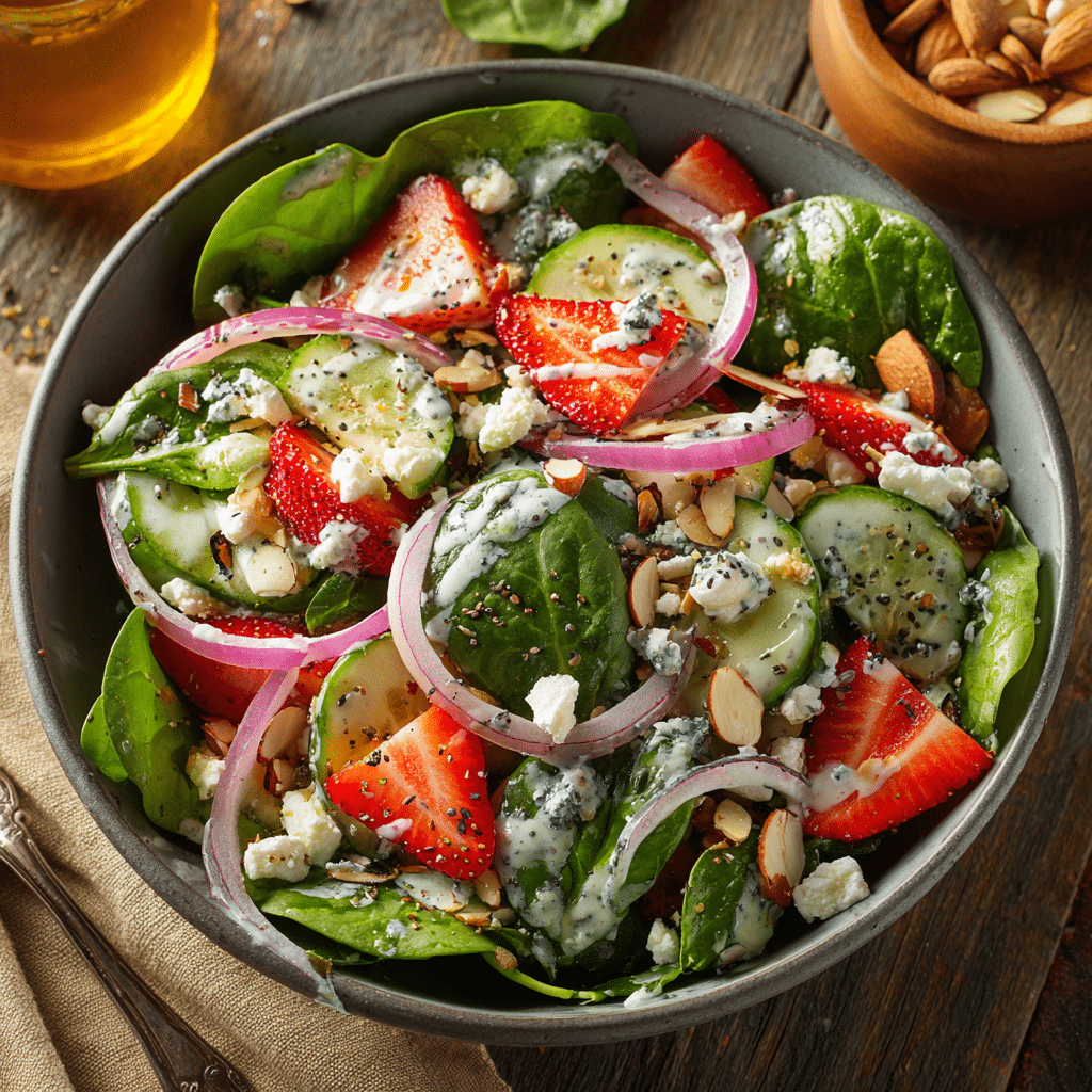 Spring has always been my favorite season in the kitchen. I remember one bright morning, sunlight streaming through my window, and me picking the first strawberries of the season from my local market. That’s when the idea for my Spring Strawberry Spinach Salad with Poppy Seed Dressing came to life. Sweet, juicy strawberries meet tender baby spinach, crunchy almonds, and a homemade poppy seed dressing that ties everything together beautifully. It’s fresh, vibrant, and perfect for sharing with family or friends on a sunny afternoon. I make this salad at least once a week in spring, and each time it brings a little celebration to the table.