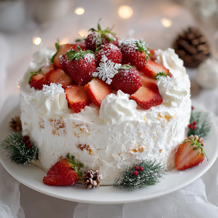 This Strawberry Angel Food Christmas Cake is light, fluffy, and perfect for the holidays. Made with whipped egg whites and folded gently with cake flour, the cake bakes up airy and tender. Fresh strawberries tossed with lemon juice add brightness, while a simple vanilla glaze brings festive sweetness. This dessert feels special without being heavy, making it ideal after a big Christmas meal. Serve it chilled or at room temperature, and enjoy a holiday cake that looks beautiful, tastes fresh, and brings everyone together.